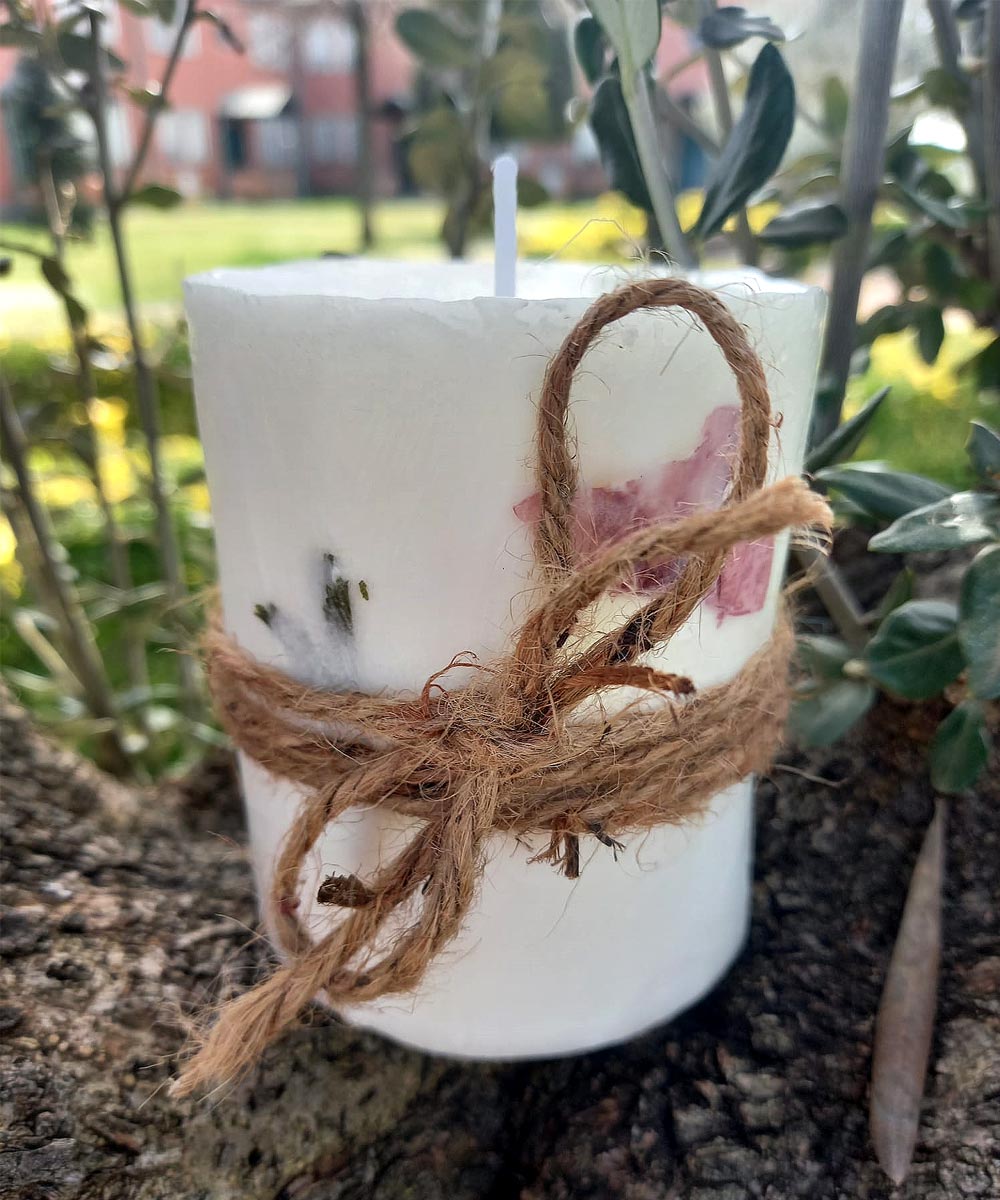 Ogni candela è un pezzo unico, realizzato a mano con ingredienti naturali esclusivamente di origine vegetale, come la cera di soia e di oliva, senza l’uso di cere d’api o paraffine, evitando qualsiasi forma di sfruttamento animale.